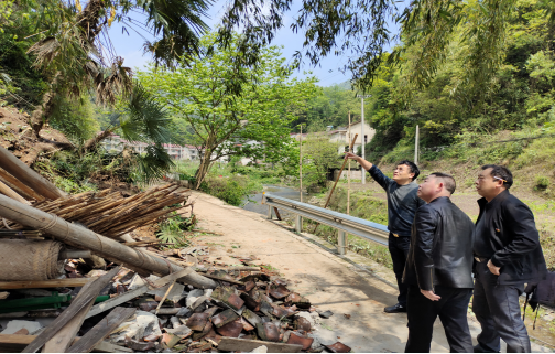 4月15日,张菊生督查东坪镇百选村地质灾害塌方处险工作,慰问受灾对象,要求按照县自然资源局304地质队制订的处险方案,在确保安全的前提下尽快处险。