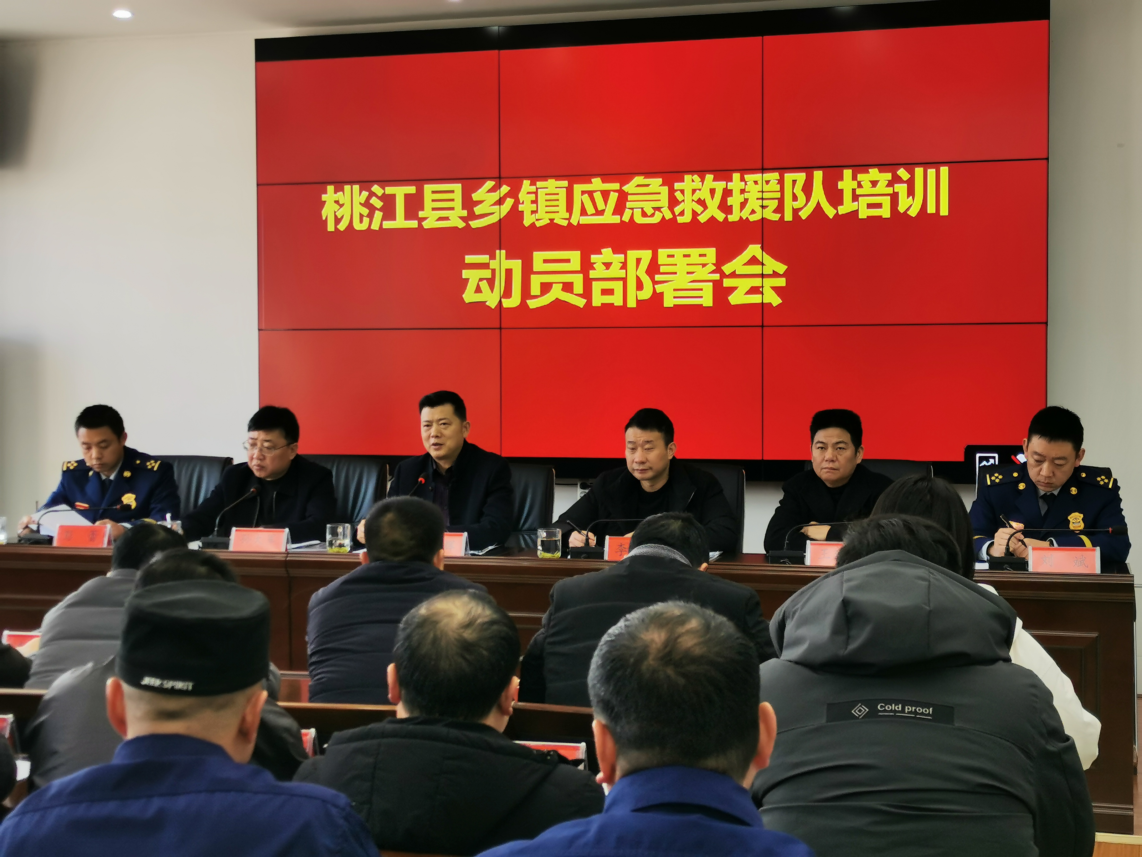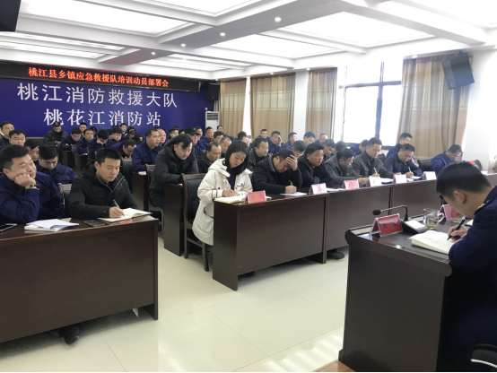 为全面提升桃江县乡镇应急能力水平,夯实应急管理基础,提高应对生产安全事故和自然灾害的能力,预防和减少人员伤亡、财产损失,桃江县15个乡镇全面开展有班子、有机制、有预案、有队伍、有物资、有培训演练等为主要内容的乡镇基层应急管理能力标准化建设。培训每年分四批次进行,培训对象为新组建的乡镇综合应急救援队伍队员,由县消防救援大队专业教官教学,课程涵盖了体能、技能、心理、运行机制及日常消防安全检查等综合应急救援能力,目的是做到人人会救援、能救援。