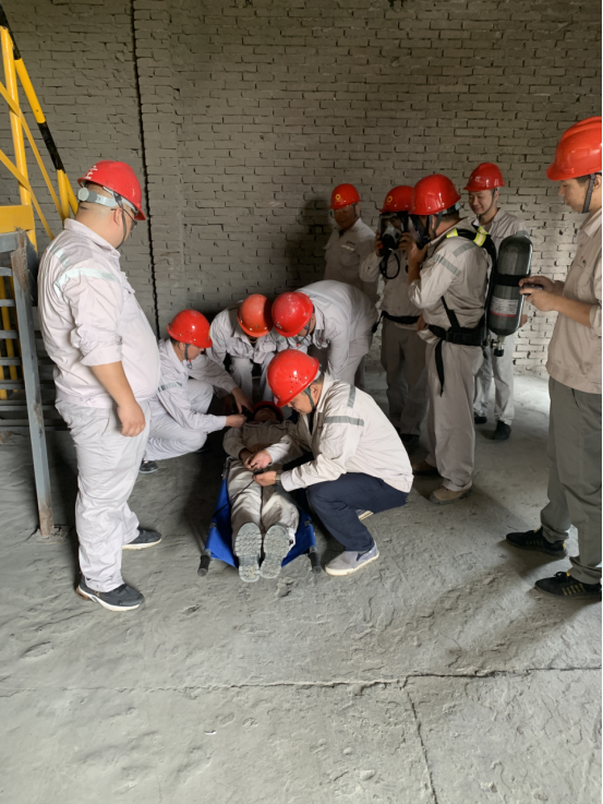 此次演练活动,由通讯联络组、抢险救援组、医疗救护组、安全保卫组35人组成,以受限空间作业人员缺氧窒息演练为主。演练活动内容丰富,场景逼真,既突出工作重点,又符合公司应急工作实际。在现场指挥、人员到位、组织协调、职责分工、个人防护、物资准备、医疗器具都落到实处,发扬了密切配合、群策群力、协同作战、精益求精的工作作风,使演练取得了圆满成功,达到了预期的目的。