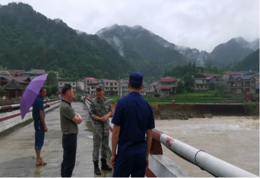 安化县委常委、人武部部长鲁志坚现场指挥调度救灾工作。