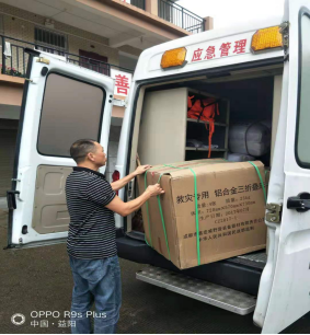 县应急管理局救灾股股长吴斐派送救灾物资