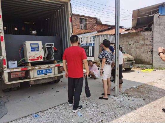 7月6日,高新区市场监督管理局工作人员在巡查过程中,在朝阳街道办事处资阳驾校姚家湾分校附近一偏僻的院子内发现一辆厢式货车有很重的汽油味,觉得不正常,打开厢门一看,发现有加油机和油罐,原来这是一个“变型的黑加油点”,没有任何安全警示标志和安全设备设施。
