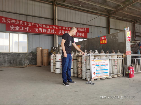 执法人员来到五一加油站检查了安全管理人员证件、安全隐患排查记录、安全生产责任制和操作规程等。在中大气体查看了安全生产台账、员工安全培训记录、气瓶存放区域现场安全管理等情况。