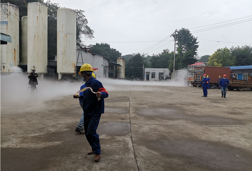 “氩气管道阀门破裂,氩气发生大量泄漏!”10月26日上午9:30,随着一阵急促的警报声,益阳中大气体有限公司储罐区突然涌出大量不明气体,赫山区会龙山街道危险化学品生产安全事故应急演练正式拉开帷幕。