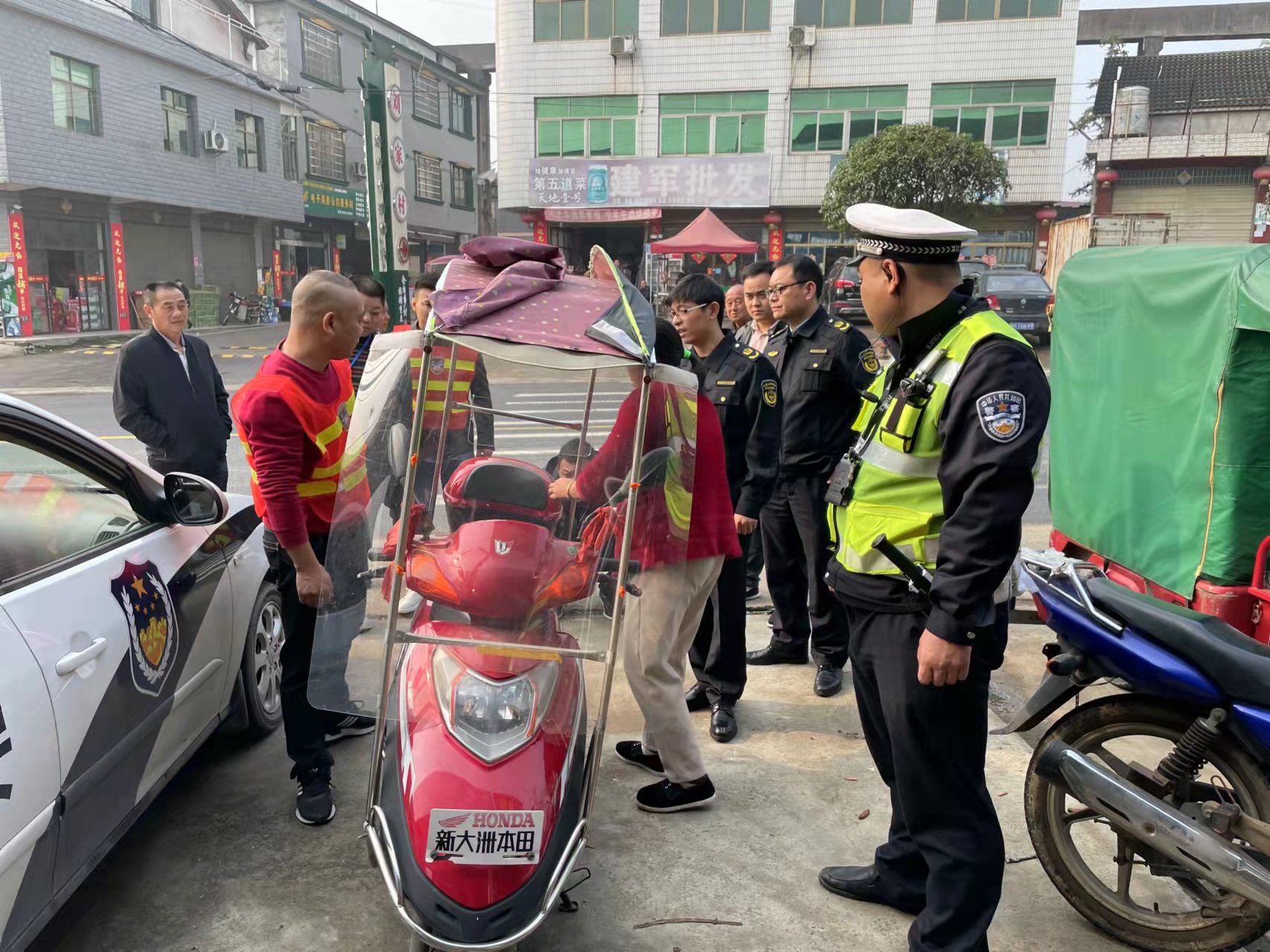 此外,行动中严格落实重要节假日出行高峰时段必上,学生上放学高峰时段必上等交通安全劝导“七必上”工作职责,排查道路交通安全隐患,加强日常巡查,发现隐患及时上报。同时,利用新闻媒体、村村响广播、微信群、发放宣传资料等宣传平台大力宣传摩电交通安全法规和安全常识。通过曝光不文明交通行为,播放摩电道路交通事故典型案例,让“血与泪”的教训,唤起人民对生命的敬畏,对安全的重视,自觉做到“不装夺命伞,要戴保命盔”,推动摩电驾乘人员由不想戴、不愿戴到主动戴、自觉戴转变。