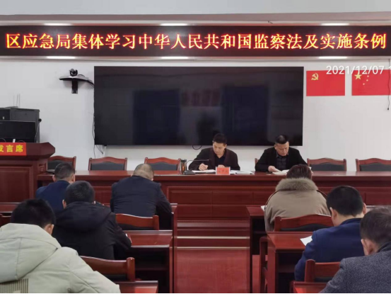 党委委员、副局长谢飞龙对《中华人民共和国监察法》及实施条例中相关内容进行了解读,并要求全体干职工强化学习,结合日常工作生活贯彻落实,尊法守法,维护应急干部形象。