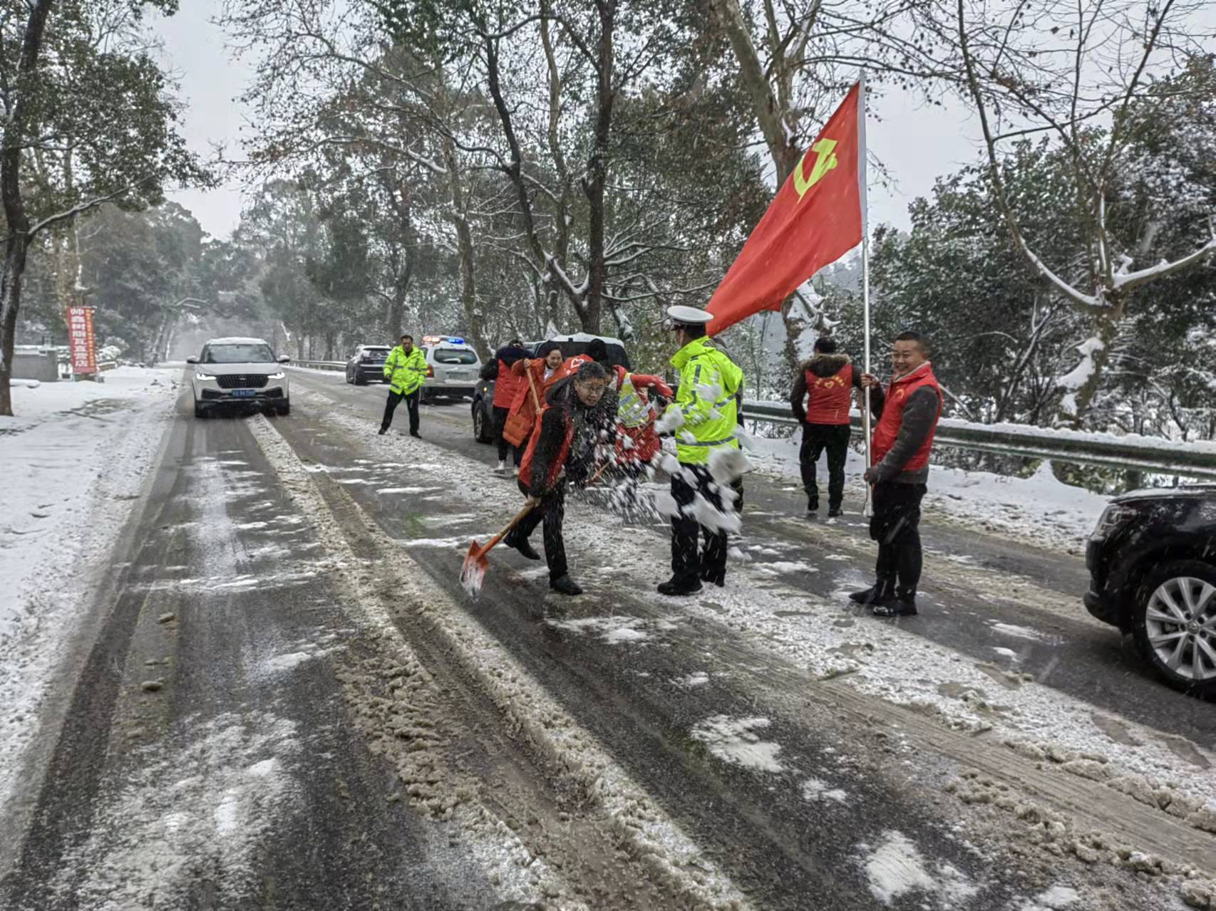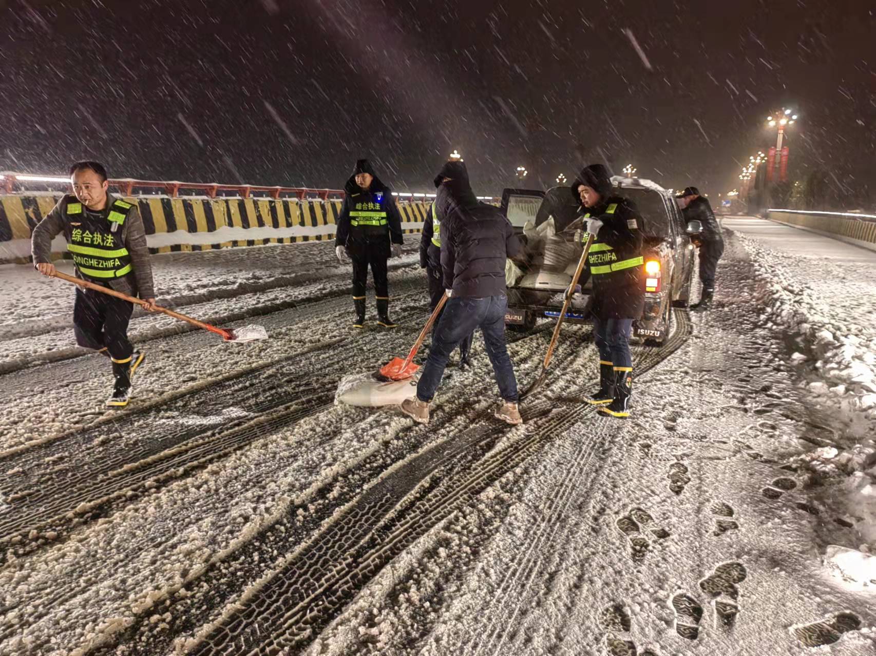 ——17个乡镇、街道、园区的1066名干部职工上路上岗,投身抗雪除冰第一线。