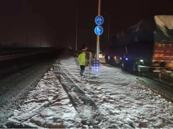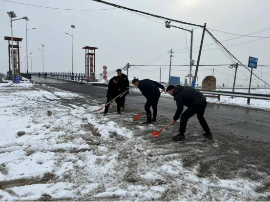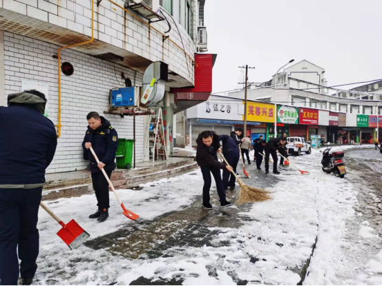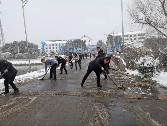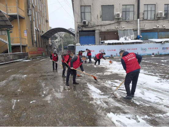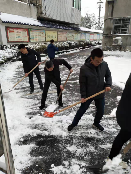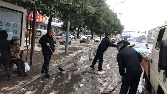 各部门单位工作人员积极加入铲雪队伍,保障道路畅通;