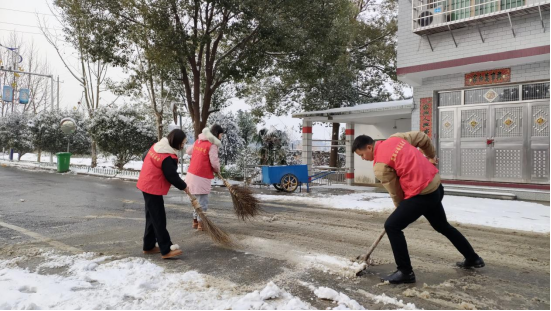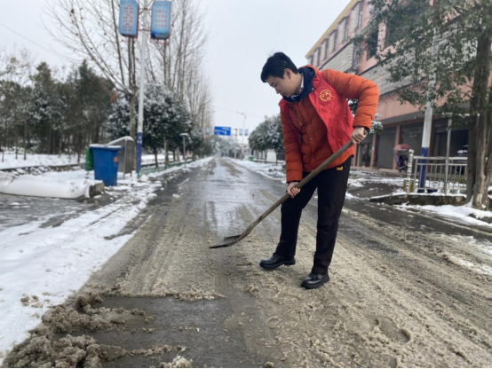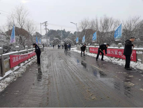茈湖口镇志愿者齐上阵,扫雪保畅。