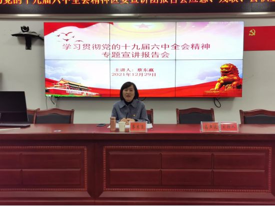 根据区委统一部署安排,12月29日,资阳区委宣讲团成员、区委网信办主任、区委宣传部副部长蔡东嬴到区应急局宣讲党的十九届六中全会精神,区应急局、区残联、区公积金中心干职工集中参加宣讲报告会,区应急局党委书记高声波主持会议。