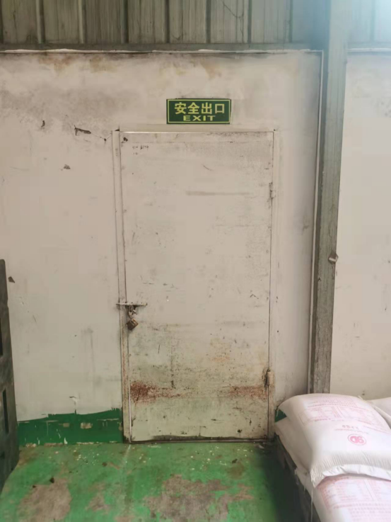 2022年3月9日,资阳区应急局执法人员对益阳恒晟食品有限公司开展安全生产检查,发现其生产车间主通道口的安全出口被存放的货物堆码垫封堵。