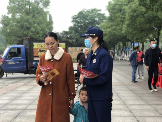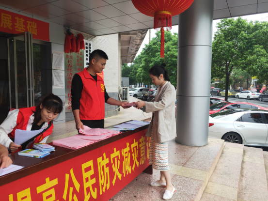 沙头镇志愿者主动上街入户为居民群众送去防灾减灾宣传单。
