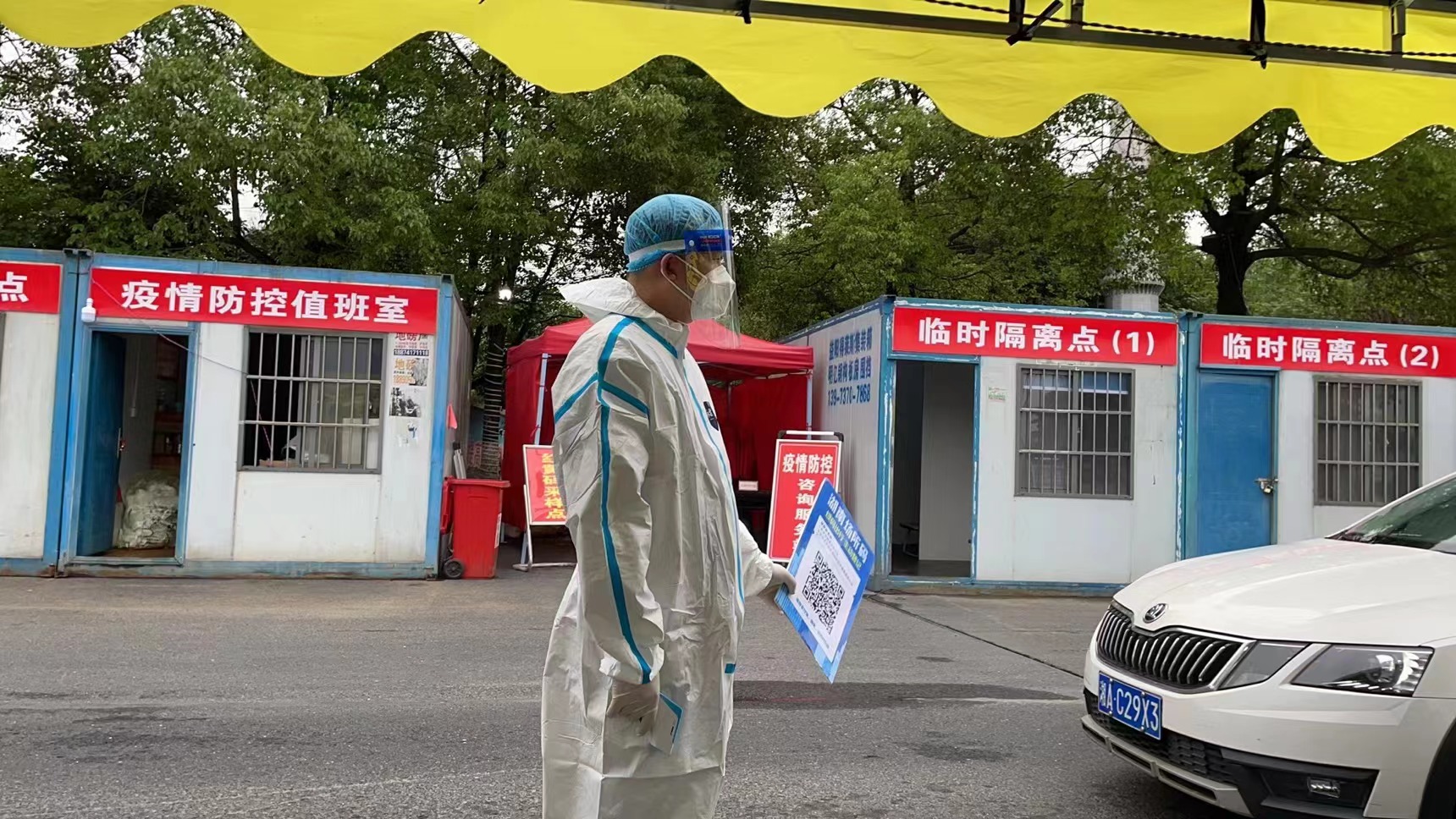 “你好,请扫场所码,打开健康卡,行程卡,谢谢!”在资阳区幸福渠高速公路收费站出口疫情防控检查站,资阳区自然资源局干职工们穿着密不透风的防护服、头套、面罩和手套,一手举着场所二维码,一手拿着温度仪,对进入检查站的每台车辆和每个人实行“凡进必查,凡进必测”。对来自上海、北京、安徽、江苏、广东等高风险疫区和健康码显示为红黄码的一律就地隔离,外省的人员车辆一律详细登记相关信息。在工作中,大家对不理解不配合的耐心进行宣传,遇见老年人不厌其烦的教他们操作怎么扫码,怎么打开健康卡行程卡等。