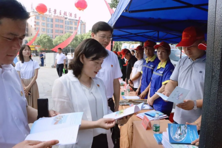在启动仪式现场的安全生产宣传展区,各部门单位还根据各自职能职责设立了咨询台和宣传展板,向过往群众普及安全用电、地质灾害防灾避险、交通安全、消防安全、校园安全等知识,进一步提升公众安全防护意识和能力。钟剑波等县领导也以普通群众身份认真细致观看安全宣传资料和宣传展板,向工作人员咨询专业防护知识。