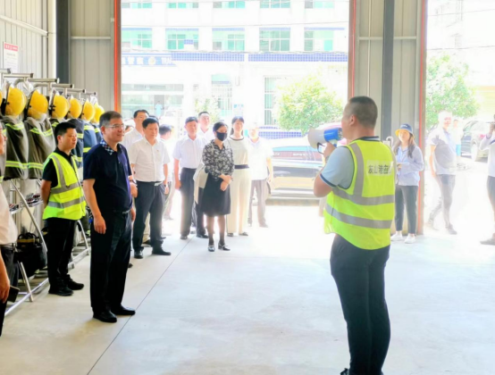 图为:调研组一行检阅应急救援队力量集结