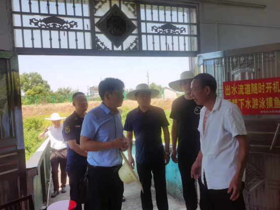 张辉在黄溪桥引水泵站同泵站工作人员交流