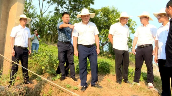 8月17日,沅江市委书记杨智勇顶着烈日来到南嘴镇和谐村、共华镇东合村以及草尾镇四兴河等地调度抗旱工作。市委常委、市委办主任周军、副市长谢贵一同调度。