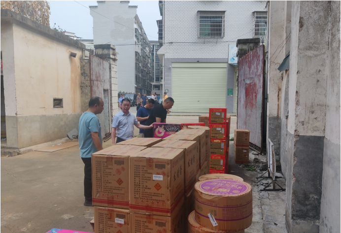 安化县应急局会同安化县平口镇应急办现场查获该窝点,共查获烟花、爆竹298箱和各类小烟花产品100多个。该厂房与幼儿园、平口镇小学仅仅相距五米,存在极大的安全隐患,一旦发生事故,后果不堪设想。执法人员对当事人作了询问笔录后,依法暂扣了涉案物品,及时转移至业烟花仓库仓库。该案件在完成调查取证后将移送公安机关,对其违法犯罪行为进行严肃处理,依法追究其法律责任。