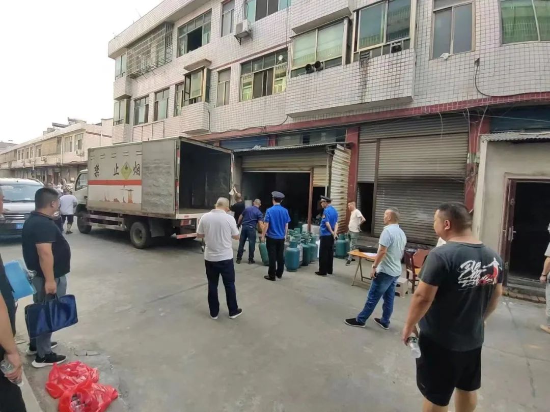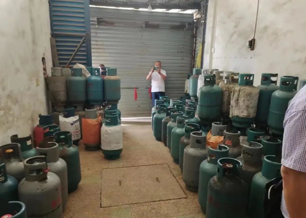 在检查过程中,发现一家非法液化气瓶储存点隐藏在集贸市场内,气瓶数量较大,联合执法人员依法对其全部实施暂扣,及时消除了安全隐患。