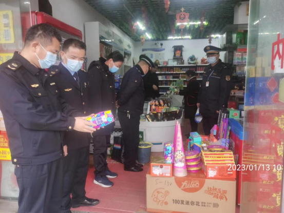 此次联合行动共计出动执法车辆11辆、执法人员35人、查看21家门店,收缴烟花小样1356支(小盒),并进行集中销毁。