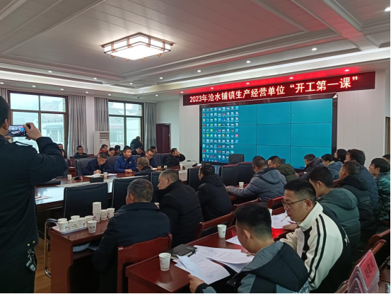 为推动企业落实安全生产主体责任,确保节后复工复产安全,2月8日,赫山区应急管理局副局长汤宇星在沧水铺镇指导企业复工复产,并组织辖区内生产经营单位开展“开工第一课讲安全”活动。