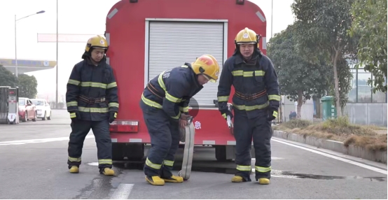 二是应急器材操作使用,现场对消防车、消防面具、自动式泡沫灭火器、手提式1211灭火器等使用频率较高的应急器材使用方式进行了教学,并及时对使用过程中存在的问题进行了纠偏。