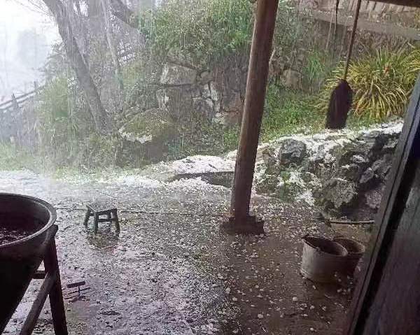 田庄乡高马二溪村、天子山村、香岩村等地出现强对流天气,突下如鹅卵石大小的冰雹,危害居民房屋安全与农作物生长。田庄乡政府组织相关工作人员迅速出动,会同村支两委成员安全转移受灾群众,及时跟踪、统计、上报灾情。