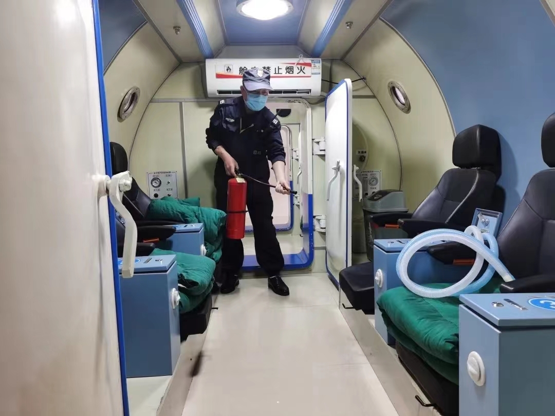 为保障医疗设备的安全运行,进一步规范和强化高压氧舱的安全管理,给广大高压氧治疗患者提供更安全舒适的医疗环境,4月19日,益阳市人民医院组织高压氧室、保卫部、医疗器械部、医务部、急诊科等多科室开展高压氧舱火灾应急演练。