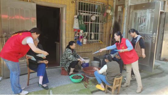 在河坝镇银河社区医院小区,8名志愿者分赴各楼栋,发放宣传资料,开展防灾减灾进社区活动,为居民送去丰富的防灾减灾科普知识,切实增强居民的防灾减灾意识。