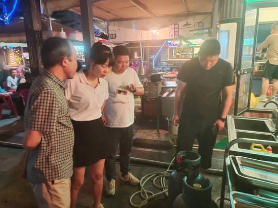 联合组沿罗文夜总汇街区认真检查商户瓶装液化气安装、使用和监测预警系统运行情况,并叮嘱商户“软管使用期限不能超过18个月,软管长度不超过2米,且不能接三通;瓶装液化气罐使用期限不超过8年;报警器安装在离地面20-30公分的地方”,同时对经营单位强调隐患问题,要求未按要求使用瓶装液化气的抓紧整改,严格按照瓶装液化气的操作规范进行使用。