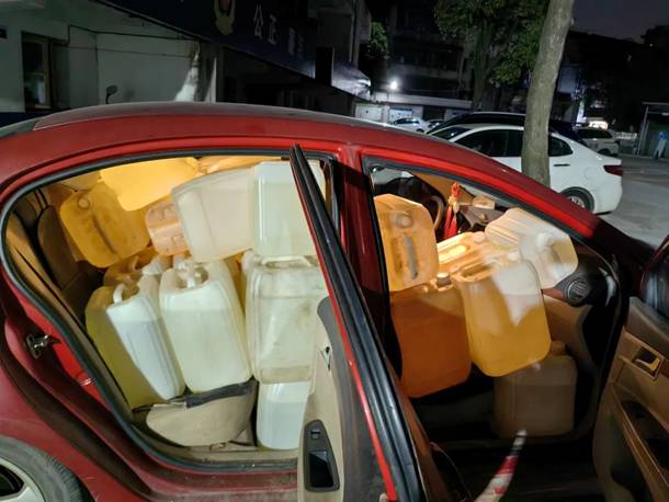 近期,有市民举报益阳城区存在贩卖散装汽油的现象。8月31日晚,市交警支队高新大队民警在蹲点巡查时,拦截了一辆装有散装汽油的红色小轿车,通过半个多月的侦查,顺藤摸瓜破获一起贩卖黑油案件。