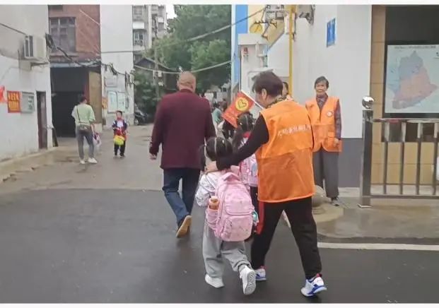 9月25日早上,“银龄”志愿者早早的来到了人民路小学分校区门口开展护学行动。疏导交通、维持秩序、护送学生进校门......为孩子们筑起一道牢固的安全屏障,他们就是大码头街道七公庙社区“银铃先锋”护学岗的志愿者们。