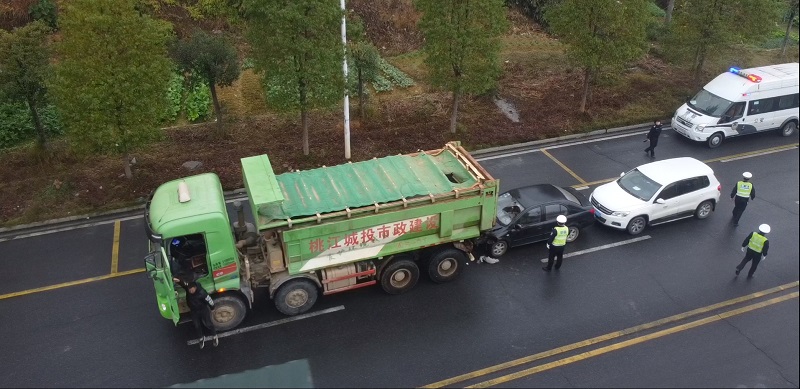 县应急指挥中心接到报警后,依所获报警信息,迅速下达出警指令,执勤巡逻中队第一时间到达事故现场,根据现场路段情况分析,实行临时交通限制、维护交通秩序,并向指挥中心报告,请求派消防、应急、交通、医疗等部门赶赴增援。