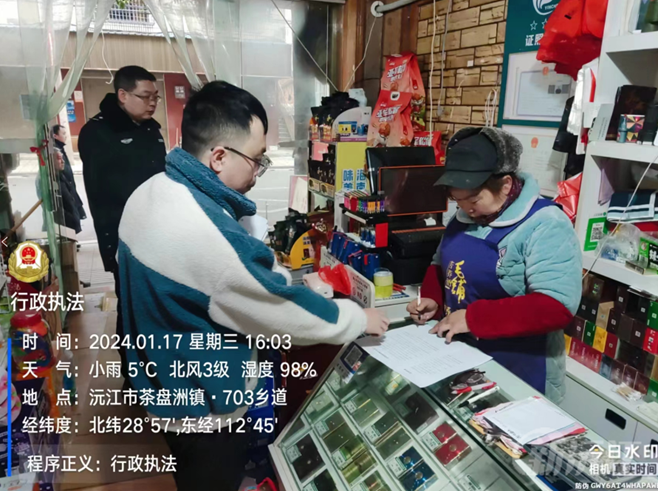 近日,沅江市茶盘洲镇应急办、综合执法大队、市监所联合对镇区经营性门店进行烟花爆竹专项整治行动,并与门店签订不销售烟花爆竹承诺书,确保群众度过平安稳定、欢乐祥和的春节。