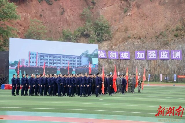 夏至端午远迢迢,大水要做两三潮。应对“端午水”,是本次实战演练的主要目的,演练的现场情景是:6月5日至8日,端午前后,受西南暖湿气流影响,益阳市出现大范围、连续性的暴雨天气,益阳市启动地质灾害防御三级响应。6月5日14时,桃江县大栗港镇牌形上村老屋村组高风险斜坡单元和桃花江镇桂花园小学中风险斜坡单元巡查人员发现后山边坡局部出现掉块现象,情况十分紧急,需立即避险转移;14时10分,高桥镇赵家山村古爽冲组巡查人员发现该区域中风险切坡建房户未落实“住上不住下、住前不住后”防灾措施,需进行挪床。本次演练完整呈现了地质灾害“人防+技防”“隐患点+风险区”双防双控水平。