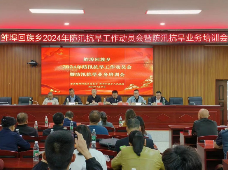 4月24日上午,鲊埠回族乡2024年防汛抗旱工作动员会暨防汛抗旱业务培训会召开,乡村两级80余人参加会议。
