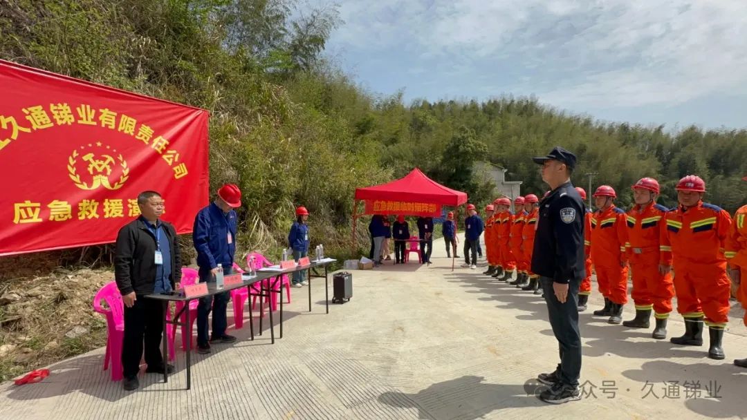 为认真贯彻落实中共中央办公厅、国务院办公厅《关于进一步加强矿山安全生产工作的意见》、湖南省应急厅《关于汛前尾矿库安全防范提示》,4月 2 日上午 11 点,桃江久通锑业有限责任公司根据企业《生产安全事故应急预案》,在汛期前由鸬鹚渡镇政府组织公司与下游居民联合在滑油洞尾矿库圆满举行尾矿库坝体渗漏事故应急救援演练。