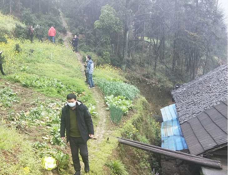 检查组在安化县大福镇长通村整体滑坡灾害点查看隐患 张学礼摄