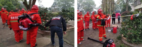 在培训中,湖南省森林防火专业队员详细向队员们讲解了森林防火灭火的基础知识和安全避险及灭火方法,并实地演练了背负式消防水泵、喷雾器、油锯、背负式割灌机等器材的使用、操作及维护,实现“打早、打小、打了”的目标。