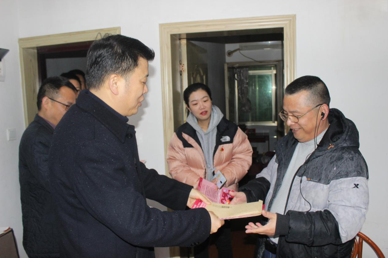 在社区困难群众曹腊枚和卜清明家中,市应急管理局党委书记、局长祁辉为他们送上慰问金和新春的祝福,详细了解了他们的生产生活情况、身体健康情况等,鼓励他们坚定信心,依靠帮扶政策和自身努力过上更好的日子。祁辉还叮嘱陪同走访的社区工作人员,时刻关注群众困难和需求,切实解决困难群众急难愁盼问题,确保群众平安过冬、祥和过年。