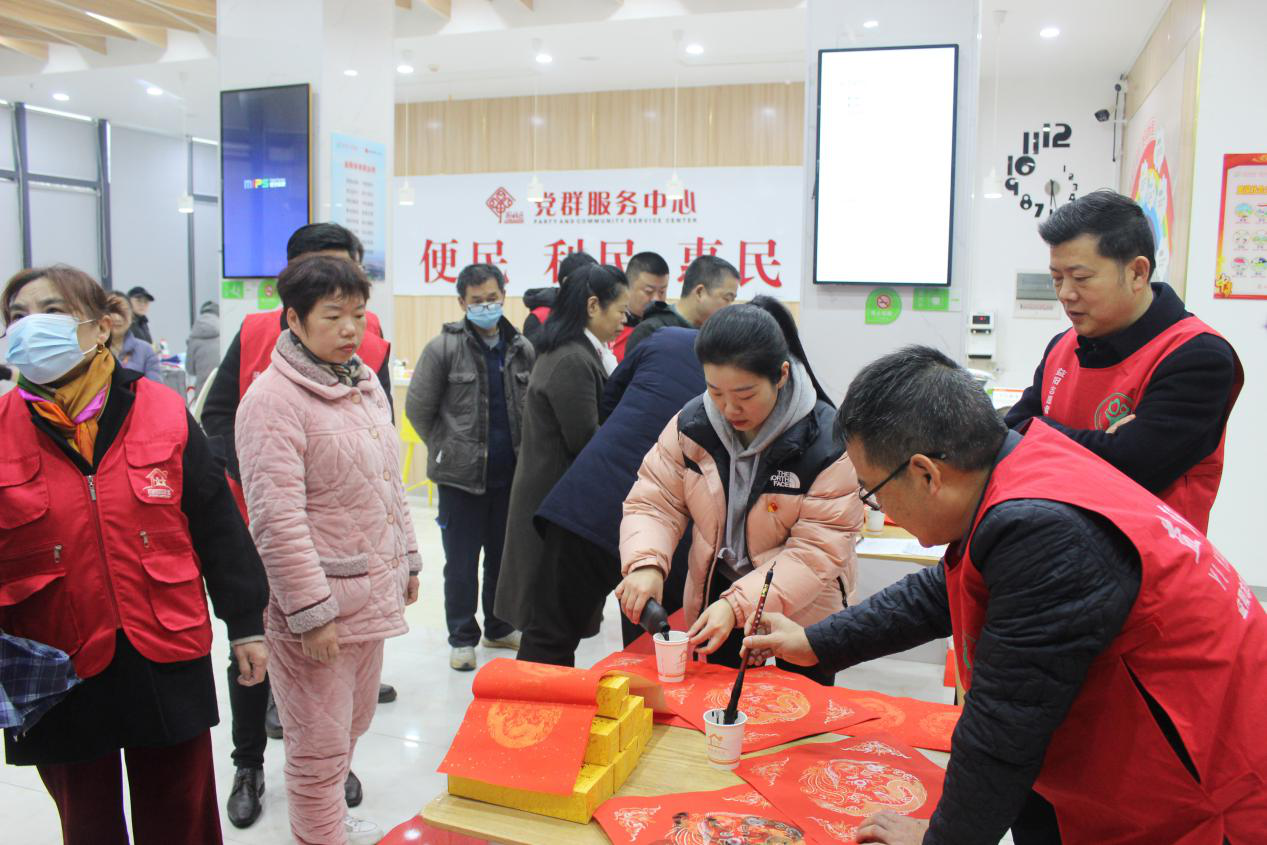 在社区党群服务活动中心,市应急管理局党委委员、副局长陈旭平和书法爱好者一道,挥毫泼墨,一张张力透纸背的“福”字、一副副寓意吉祥、饱含祝福的春联,传递着浓浓的年味,送到居民手中。