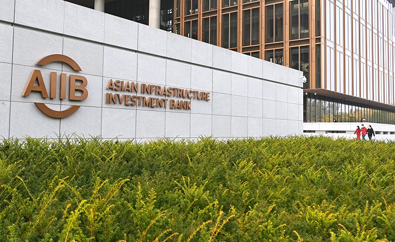 这是2021年10月25日拍摄的亚洲基础设施投资银行(亚投行)标志。新华社记者 李贺 摄