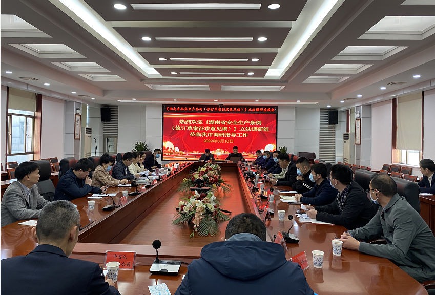 3月10日至11日,省立法调研组就《湖南省安全生产条例(修订草案征求意见稿)》到我市开展调研工作。市政府副秘书长杨禄仁,市人大、市司法局、市应急管理局相关负责同志陪同调研。