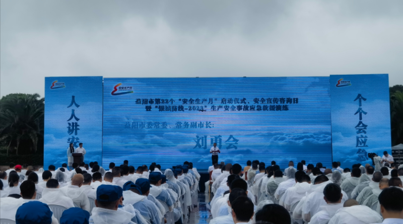6月19日上午,益阳市2023年“政务公开主题日”安全生产月活动启动仪式、安全宣传咨询日暨“银城防线- 2023”生产安全事故(液氨泄漏)应急救援演练在佳宁娜广场举行。市委副书记、市长熊炜出席并宣布“安全生产月”活动启动。市委常委、常务副市长刘勇会讲话。市人大常委会副主任、市总工会主席杨丽萍出席。