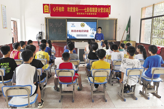 广泛宣传,让防溺水知识入脑入心。今年4月开始,我市各级教育部门陆续部署未成年人防溺水工作,分别召开辖区各学校学生防溺水工作会、调度会,按照“九长负责制”层层压实工作责任,要求全市各中小学、幼儿园、校外培训机构做到宣传教育网络不留死角、空间覆盖不留缝隙,坚决防范未成年人溺水事件发生。暑期到来前,资阳区五福路小学全体教职工开展家访活动,为1800多名学生送安全知识上门。为做到防溺水宣传教育全覆盖,学期结束前,资阳区教育局要求辖区各校(园)长上好一堂安全教育课,部署各中小学校开展“大家访”活动,上门宣传,与家长联动做好防溺水宣传教育工作;赫山区教育部门通过发放防溺水告家长书、承诺书、《致学生(幼儿)家长一封信》和《2023年平安暑假告学生家长书》,督促健全家校联系机制,并通过“赫山教育”微信公众号、微信家长群、智慧校园平台等媒介,每星期至少推送2次防溺水安全常识及自救知识。由乡镇、街道和社区、村联合志愿者组织开展的暑期课堂,也是家长和孩子学习防溺水知识的重要途径。“如果有人溺水,应该怎样科学救援呢?”7月8日上午,湖南师范大学来益开展暑期实践活动的大学生们,为资阳区新桥河镇十家村小学的学生带来了“生命只有一次”防溺水安全教育讲座,并通过有奖竞答等互动方式,让学生入脑入心,增强安全防范意识。