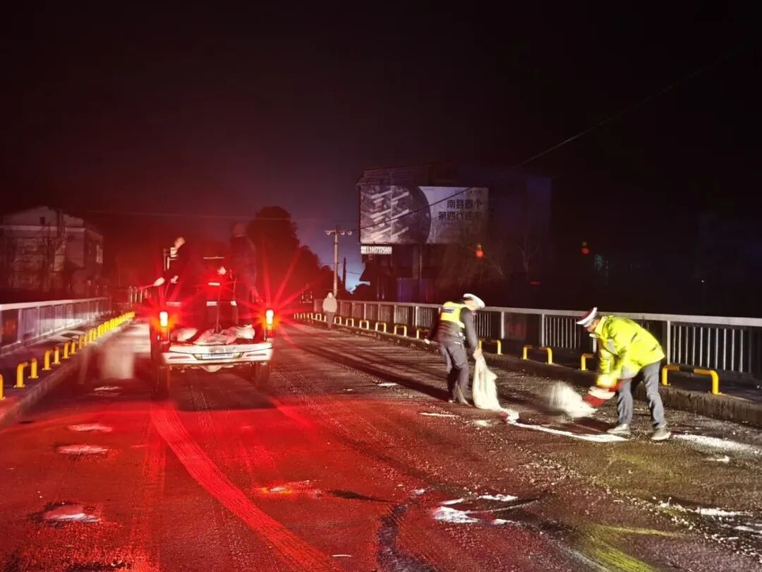 南县累计出动人员313 人次,调配各类作业车辆116 台次,其中铲车 3 台、撒盐车 3 台、融雪车 4 台,播撒融雪剂18 吨。对国省县道关键路段、桥梁及岔口等易结冰重点区域,开展除雪防滑和交通疏导作业,全力筑牢道路交通安全防线,切实保障人民群众出行安全。南县各乡镇、县直部门积极开展铲冰融冰行动。