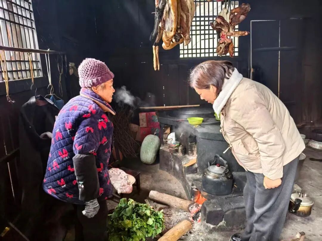 1月20日,安化县柘溪镇镇村干部开展防冰冻、防一氧化碳中毒敲门行动,走访独居老人。