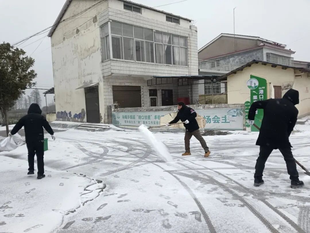 乌嘴乡工作人员在港口村开展融雪除冰作业。