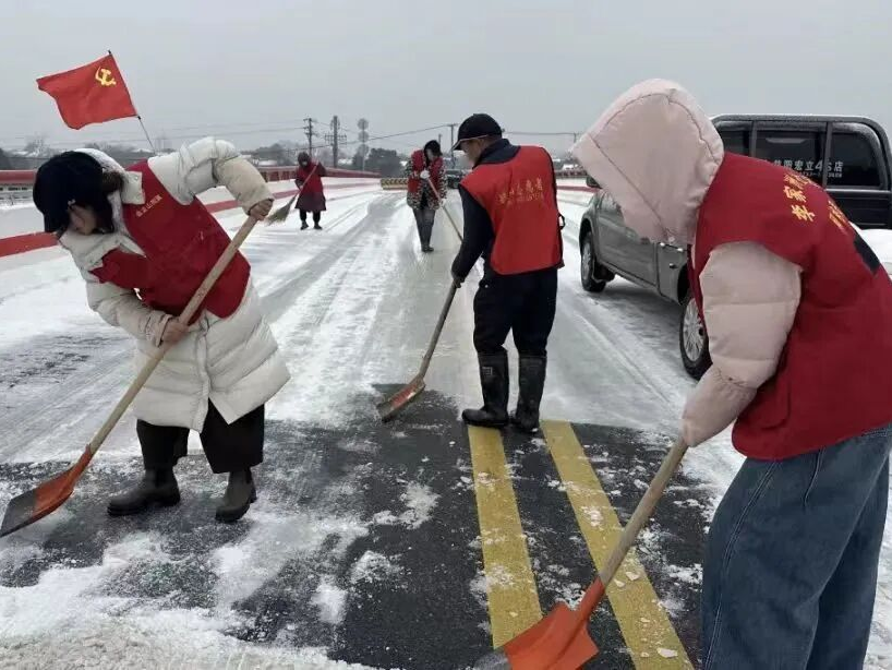 1月20日,会龙山街道第一时间组织动员180余名党员干部、村(社区)工作人员等多方力量,对桥梁、缓坡等重点路段采取撒盐、扫雪除冰应急措施,全力保障道路畅通和群众出行安全。