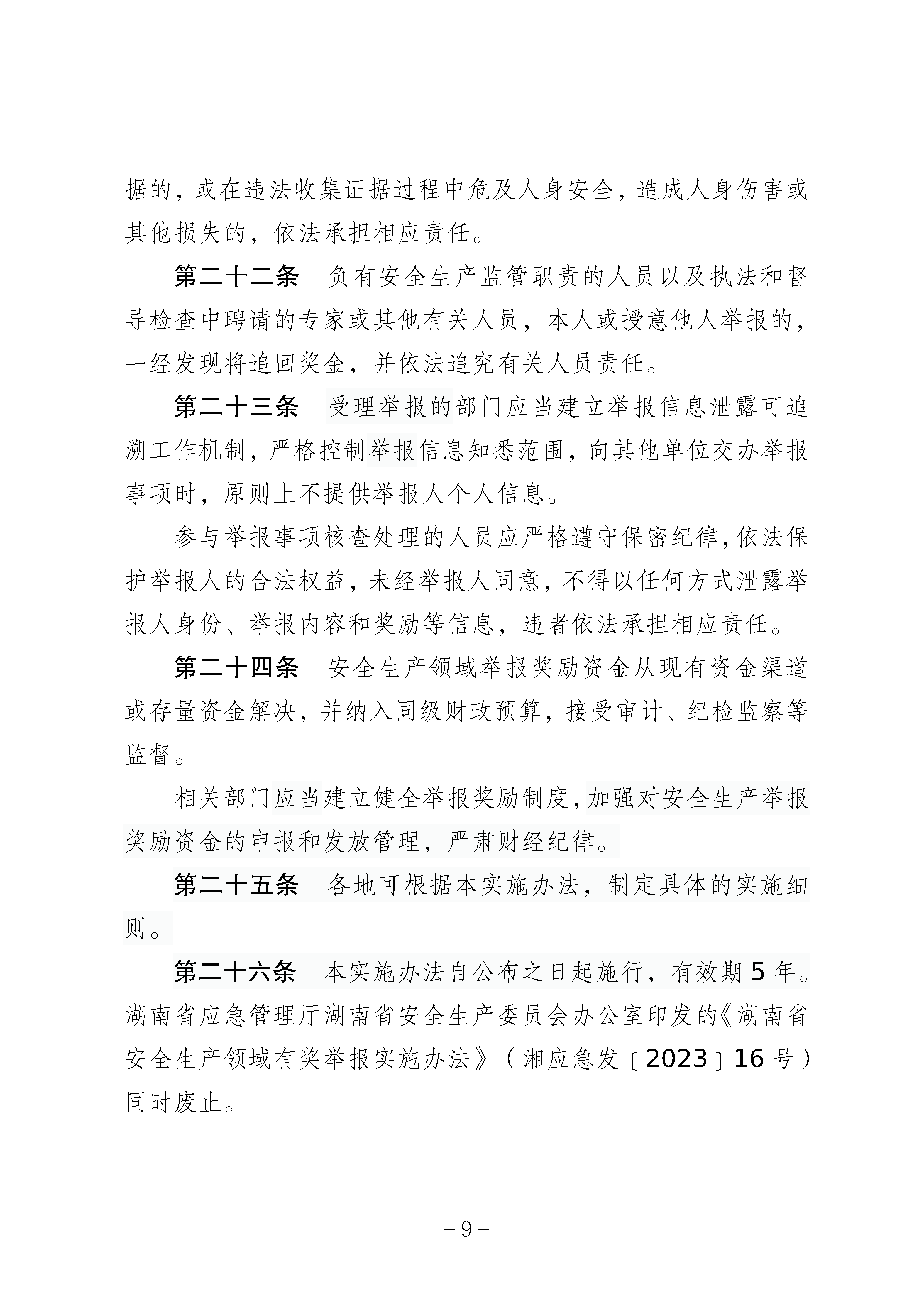 湖南省应急管理厅 湖南省安全生产委员会办公室关于印发《湖南省安全生产领域有奖举报实施办法》的通知